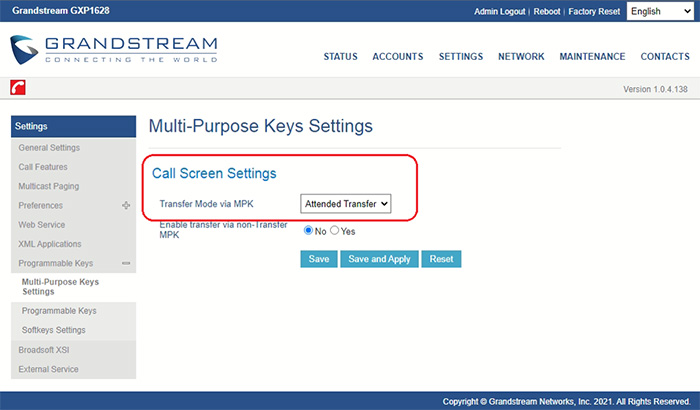 در قسمت Call Features گزینه Attended Transfer Mode را روی حالت Dynamic قرار دهید.