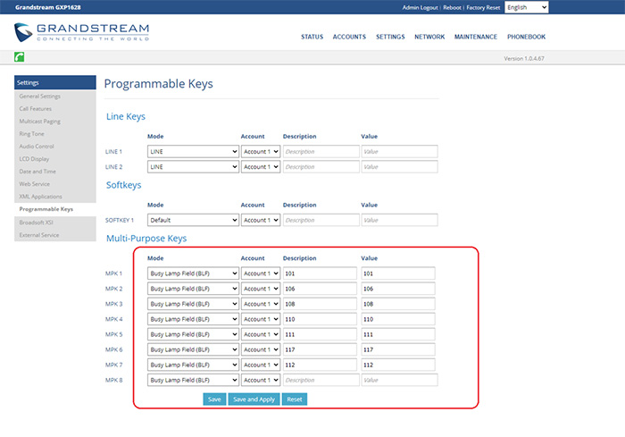 در این بخش می توانید تنظیمات BLF های تلفن را بر اساس نیاز مشتری تنظیم نمایید.