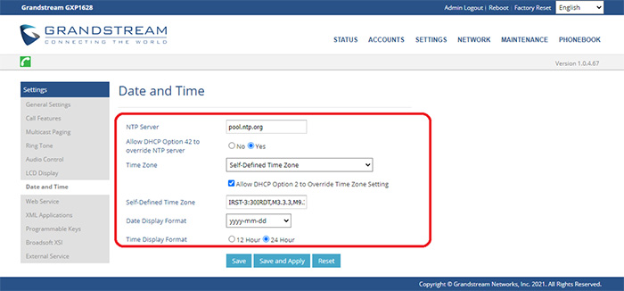 در بخش Date and Time در قسمت Self-Defined Time Zone عبارت IRST-3:30IRDT,M3.3.3,M9.3.5 را قرار دهید. باقی تنظیمات را مانند تصویر انجام دهید.
