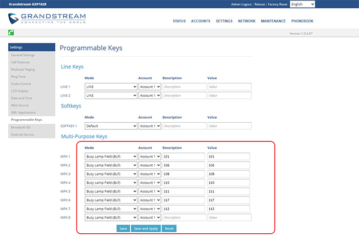در این بخش می توانید تنظیمات BLF های تلفن را بر اساس نیاز مشتری تنظیم نمایید.