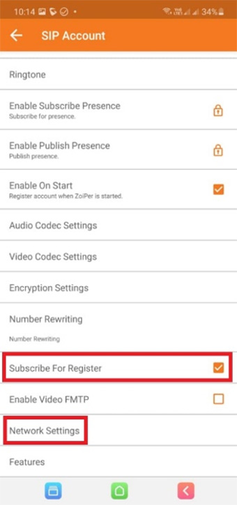 تیک گزینه Subscribe For Register را بزنید و گزینه Network Setting را انتخاب کنید .