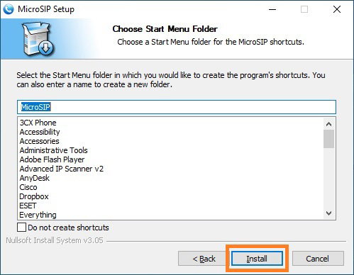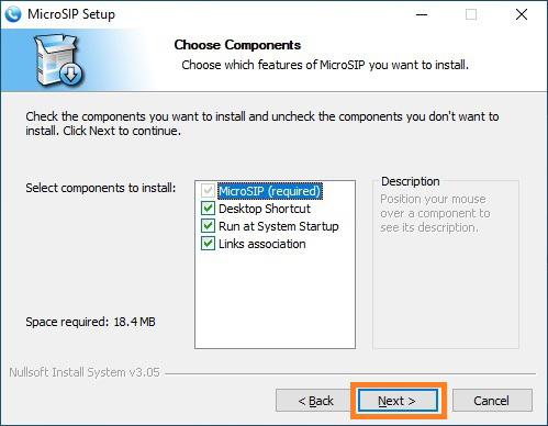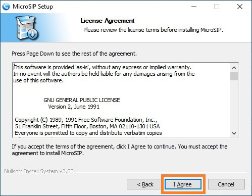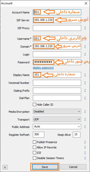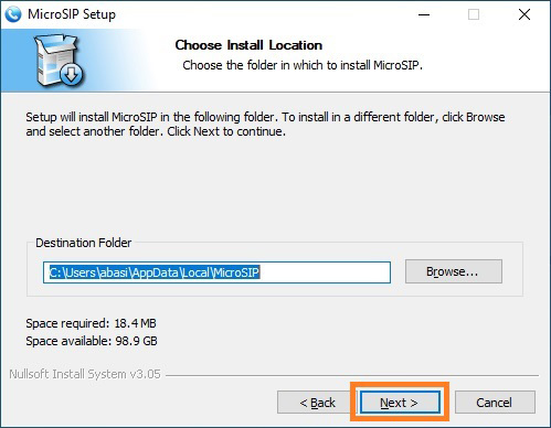 پس از اجرای نرم افزار نصب سافت فون MicroSIP تمامی مراحل را مانند تصاویر زیر ادامه دهید: