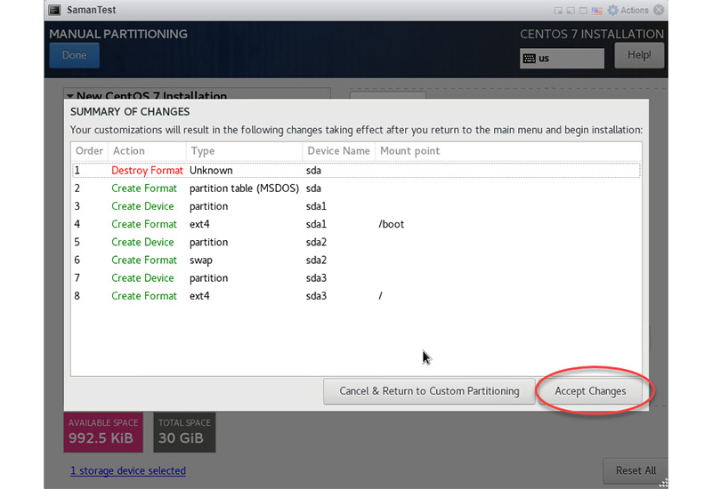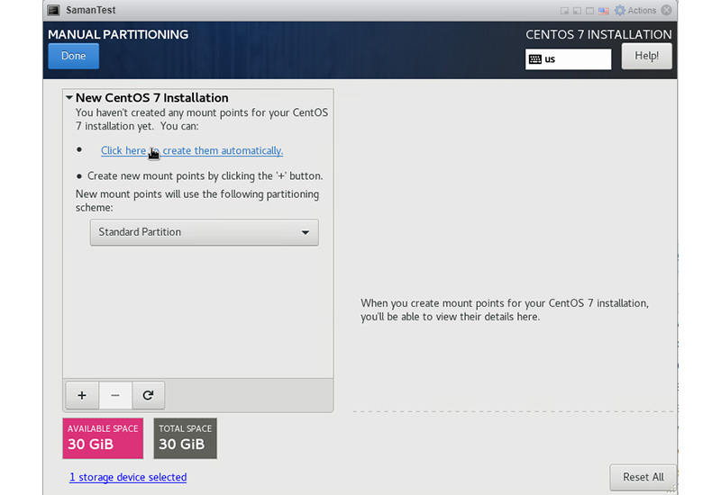 در بخش Installation Destination  مشخص می نمایید که لینوکس در کدام بخش نصب شود و می توانید هارد‌های متصل به سرور لینوکس را به دلخواه بخش‌بندی کنید.