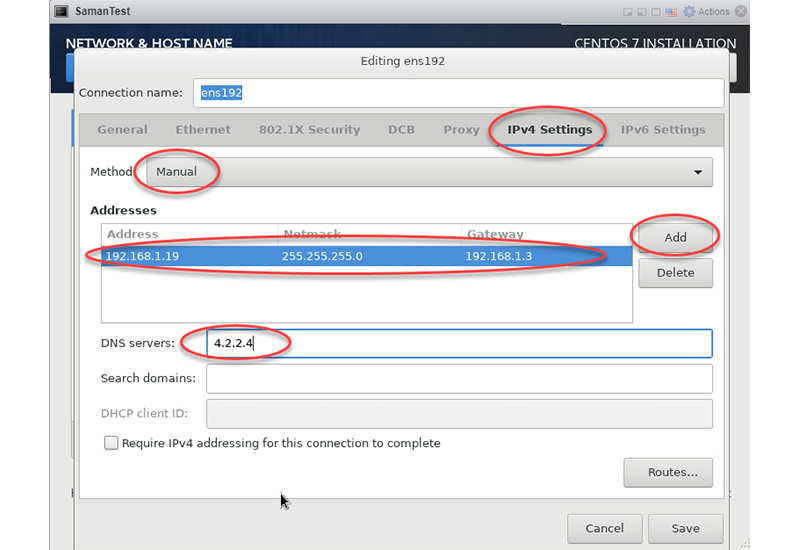 وارد تب IPv4 Settings شوید. متد manual را انتخاب نمایید. سپس Add را بزنید و ip مورد نظر خود را تعریف نمایید.