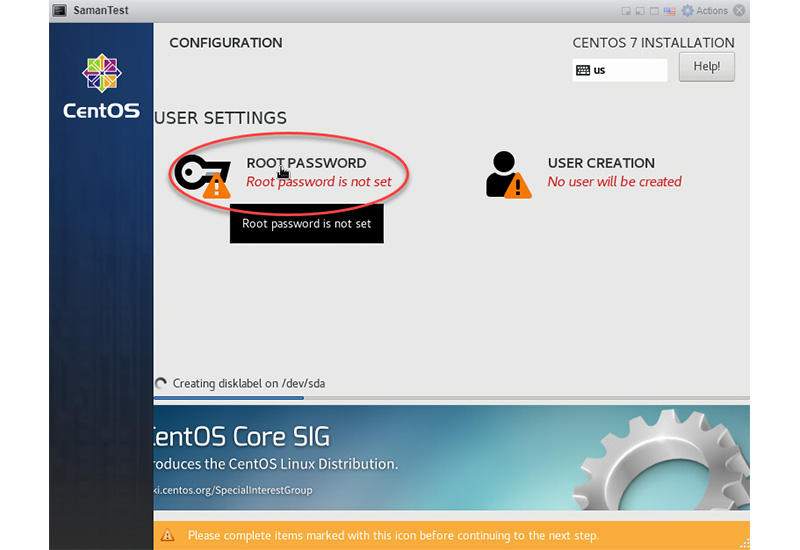 همزمان با روند نصب با انتخاب گزینه ROOT PASSWORD پسورد سیستم را تنظیم کنید.