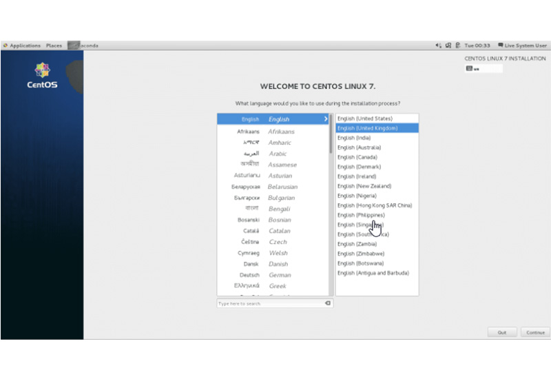 زبان سیستم را تنظیم کرده و روی دکمه continue کلیک نمایید.
