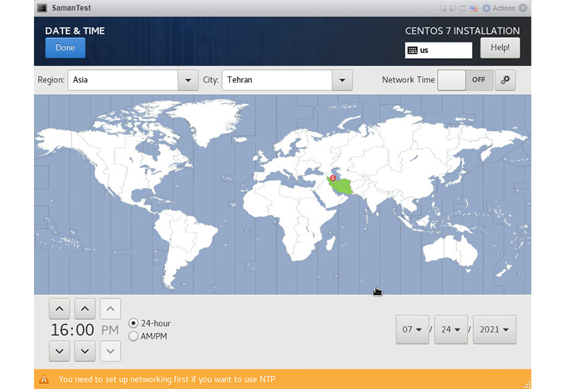 با استفاده از نقشه‌ای که در این بخش تعبیه شده است می­توانید کشور خود را انتخاب نمایید ، ساعت و تاریخ را تنظیم کنید و سپس گزینه done را کلیک کنید.