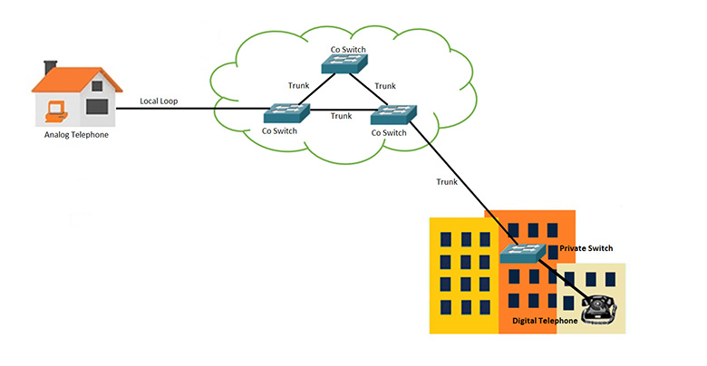 سوئیچ مخابرات ( Co Switch ) : این دستگاه وظیفه سرویس دادن به ابزارهای Local Loop را فراهم می کند. این سرویس ها شامل سیگنالینگ ، گرد آوری شماره ها ، مسیریابی تماس ها ، برقراری و قطع تماس ها می باشند.
