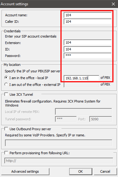 در گزینه های Account name ،Caller ID ،Extension ،ID ، Password شماره داخلی مورد نظر را وارد کنید و در انتها در قسمت اطلاعات مربوط به IPBX آدرس IP مرکز تلفن خودتان را وارد نمایید.