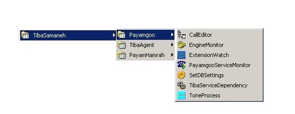 برای اجرای برنامه پیام گو باید عملیات زیر را انجام دهید. منوی Start و سپس Programs را انتخاب نمائید و مطابق شکل برنامه PayamGooServiceMonitor را اجرا کنید .