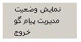 3- خروج : با انتخاب این گزینه از کل برنامه پیام گو خارج می شوید. توجه کنید در صورتی که صفحه مدیریت سیستم با علامت بسته شود، نرم افزار پیام گو بسته نمی شود و بصورت Minimized در پائین صفحه باقی می ماند. تنها در صورتی که این گزینه را انتخاب کنید کل برنامه بسته می شود. همچنین در صورتی که برنامه پیام گو در حال اجرا باشد نمی توان سیستم عامل ویندوز را Restart و یاShutdown (خاموش) نمائید، باید ابتدا از برنامه "پیام گو" با انتخاب این گزینه خارج شوید.