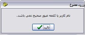 در صورتی که نام کاربر و یا کلمه عبور صحیح نباشد پیغام زیر نمایش داده می شود .