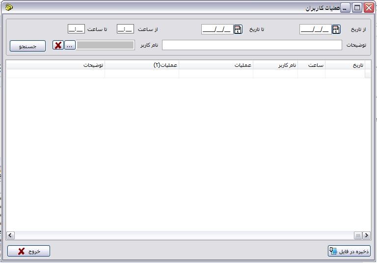 در صورت بروز هر گونه اشکال جهت پیگیری خطای بوجود آمده ابتدا عملیات انجام شده در بازه زمانی ایجاد اشکال را جستجو کرده و به کمک این دکمه در فایل جداگانه ای ذخیره نمائید تا توسط کارشناسان شرکت بررسی گردد.